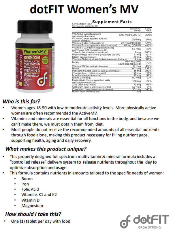 Women's MV Product Dietary Support Reference Guide (PDF)